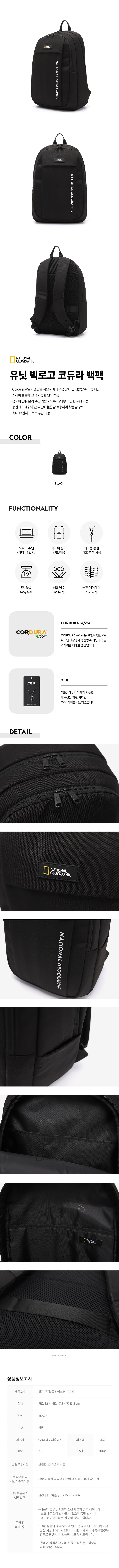 [내셔널지오그래픽] 유닛 빅로고 코듀라 백팩 N256ABG020