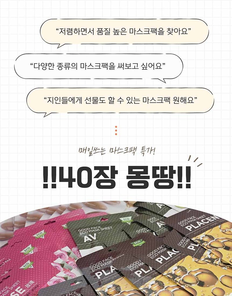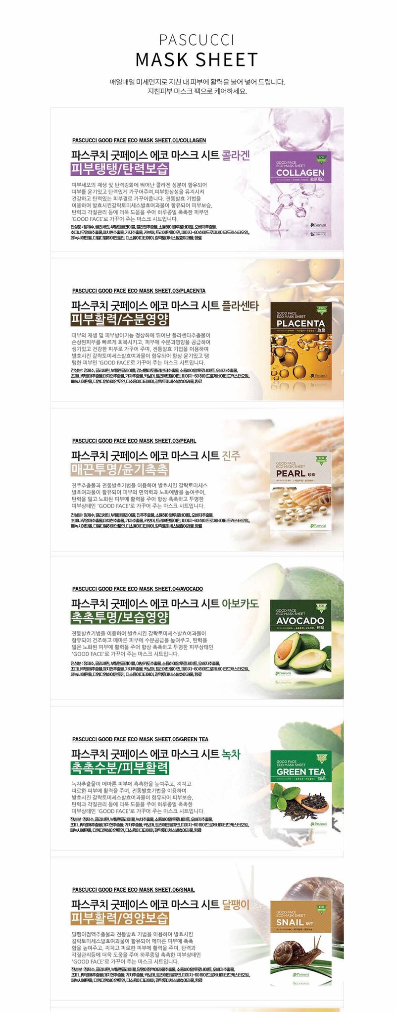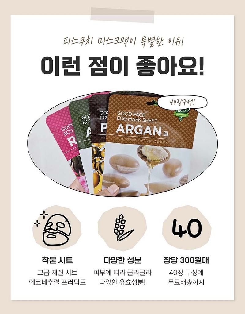 [파스쿠치] 굿페이스 마스크팩 40장 7종 택1