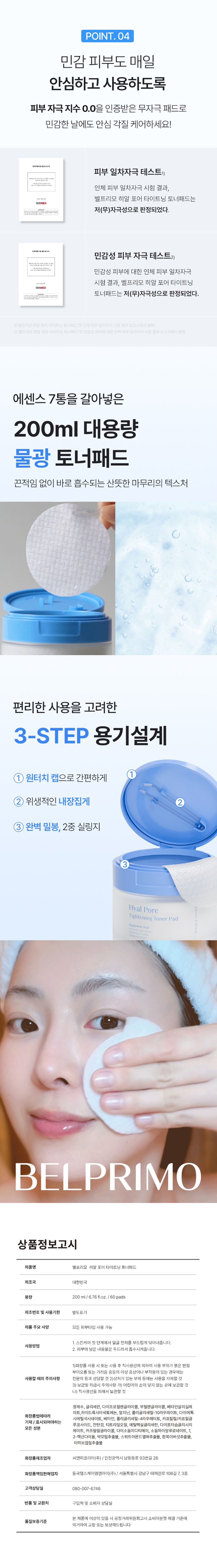 [벨프리모] 히알 포어 타이트닝 토너 패드(200ml / 60매)