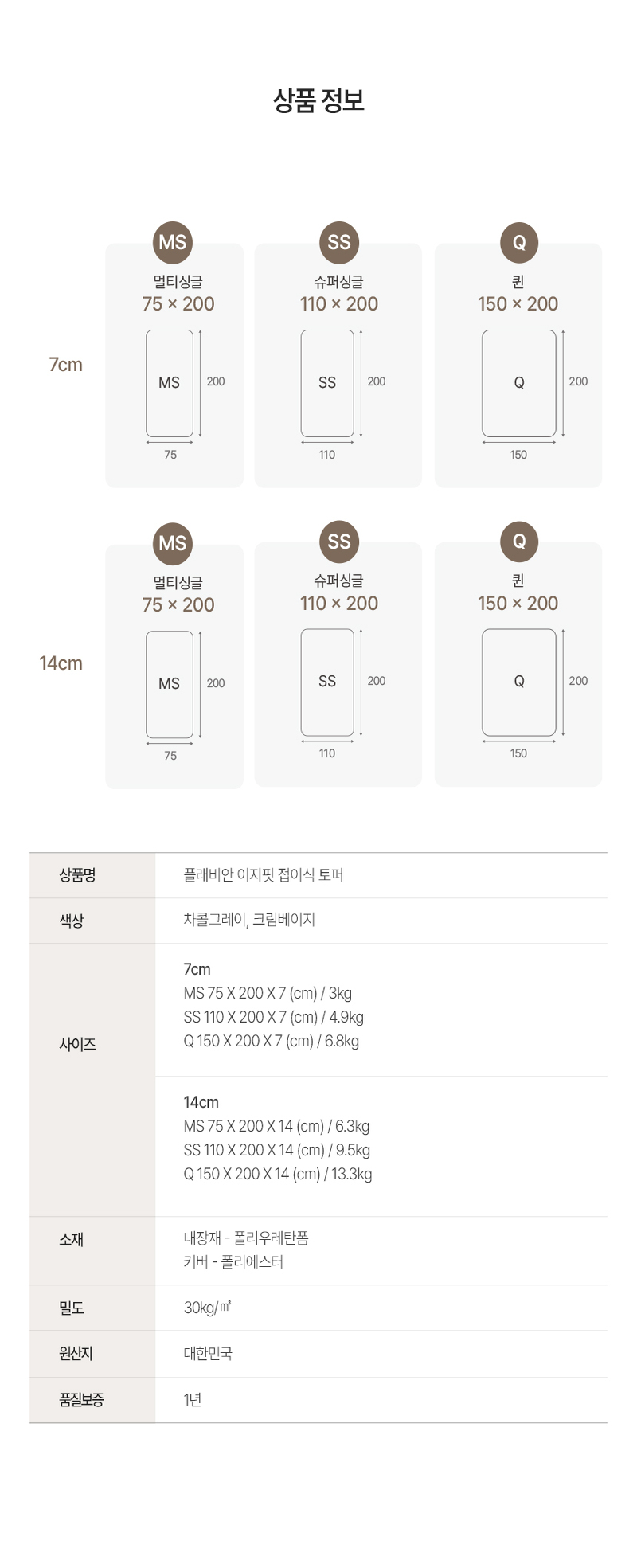 [플래비안] 이지핏 접이식 두툼 평판토퍼 매트리스 7cm Q