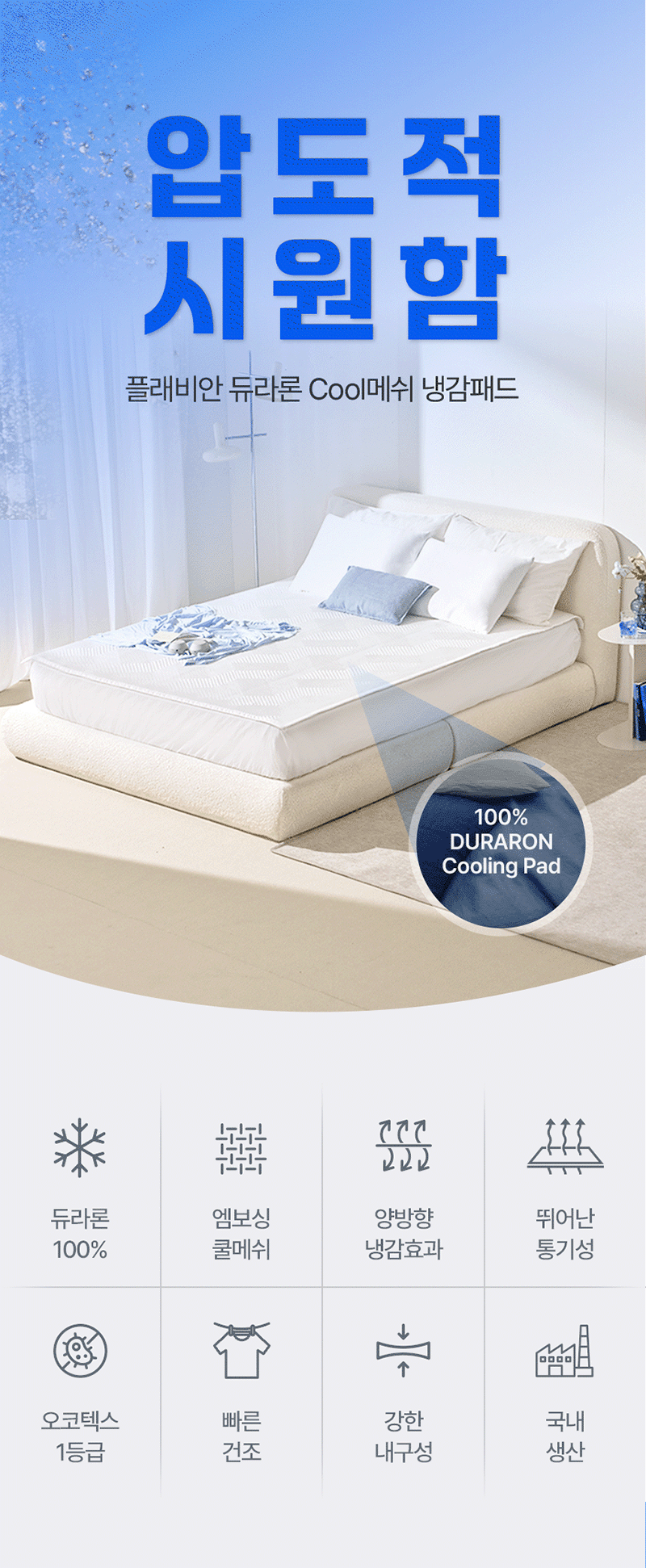[플래비안] 듀라론 쿨 메쉬 냉감패드 SS + 베개커버(XL) 2장