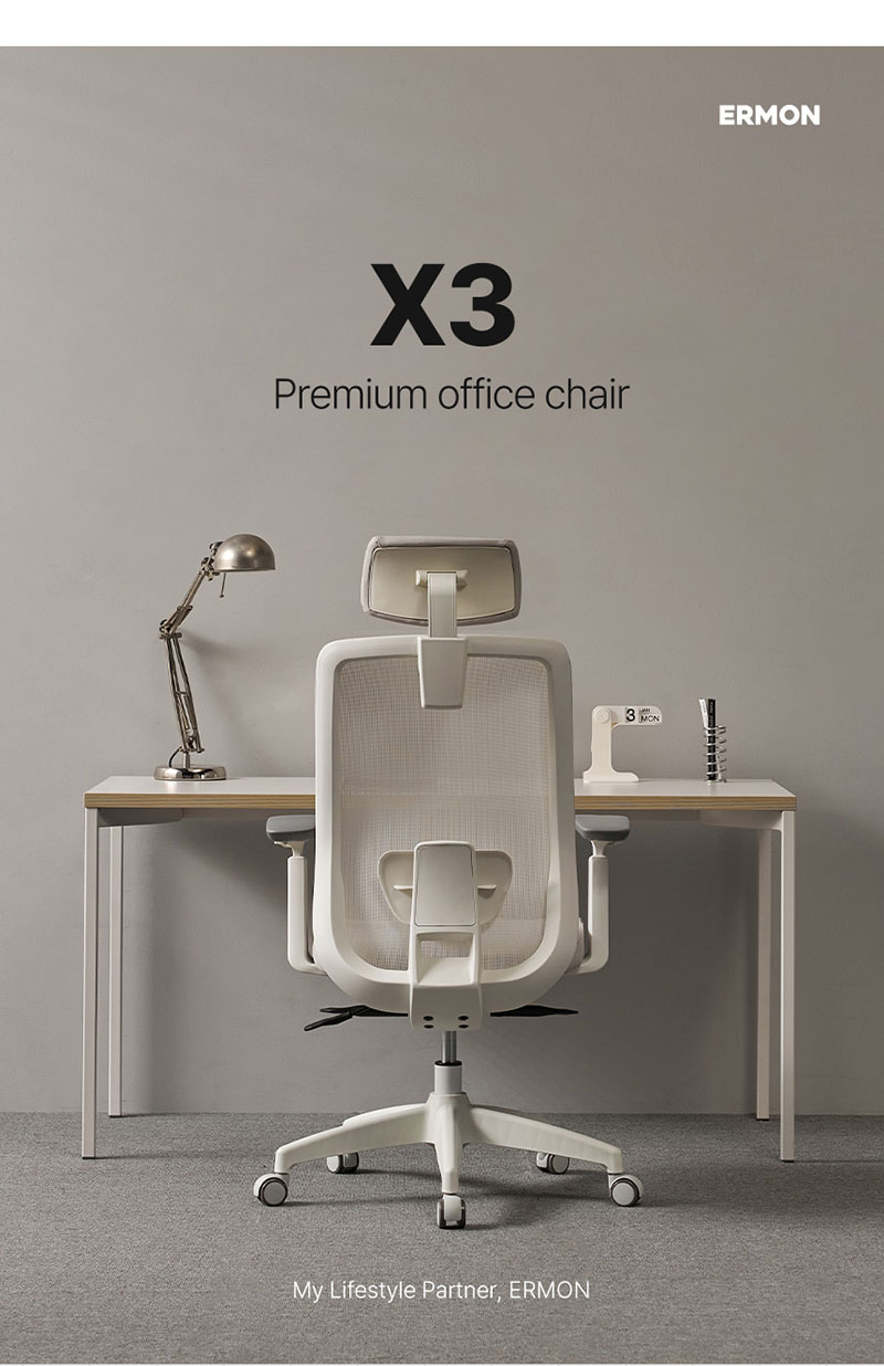 [에르먼] X3 국내생산 하이엔드 프리미엄 사무용 사무실 허리편한 에어메쉬 책상의자