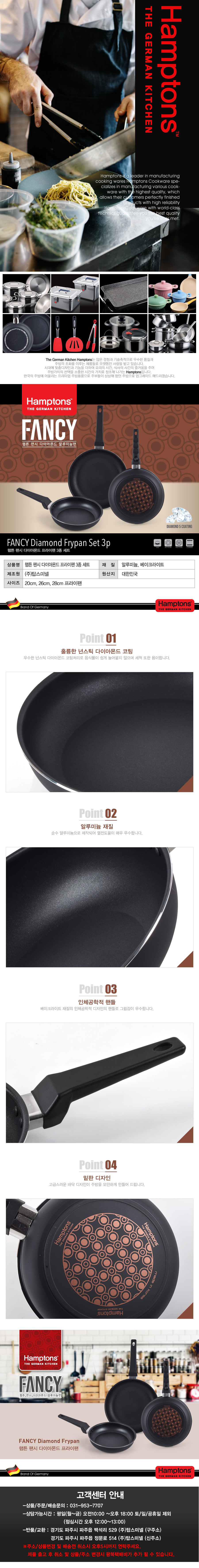 [Hamptons] 햄튼 팬시 다이아몬드 5중코팅 후라이팬3종세트-C / HFF-2F6F8F
