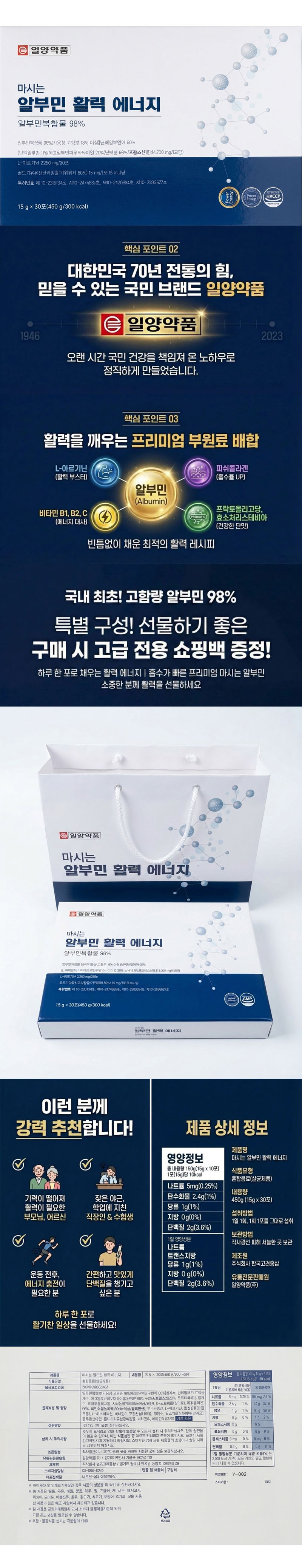 [일양약품] 마시는 알부민 활력 에너지 50g x 30포 (전용 쇼핑백)