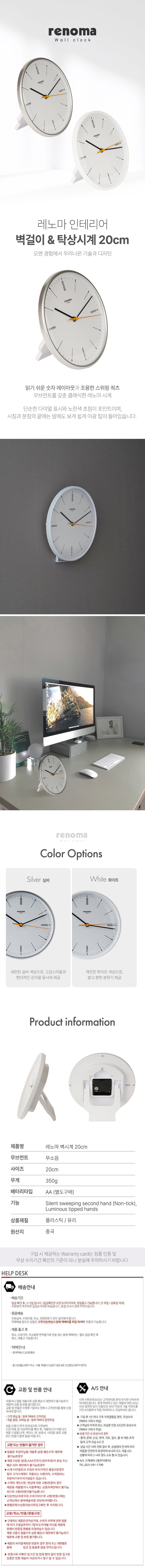 레노마 인테리어 디자인 무소음 벽시계 탁상시계겸용 RNC201 (20cm) 색상 택1