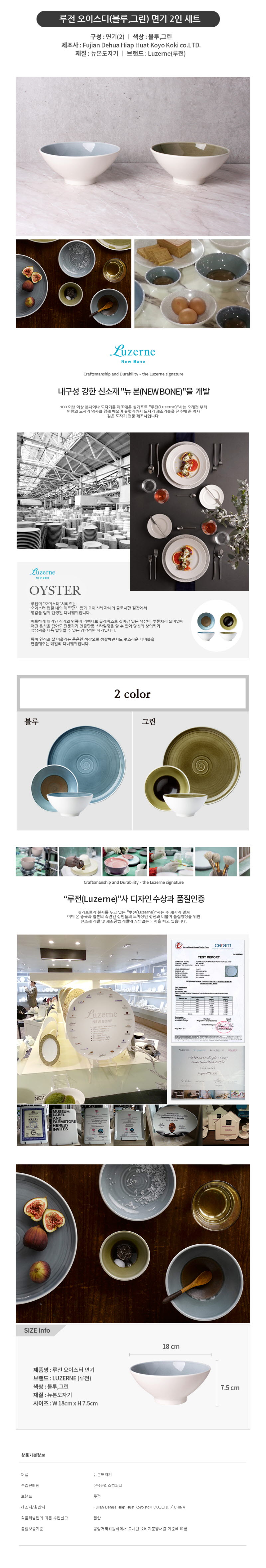 루전 오이스터(블루,그린)면기 2인 세트