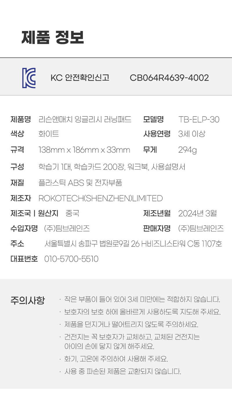 팀브레인즈 리슨앤매치 잉글리시 러닝패드 TB30/3세이상 학습기