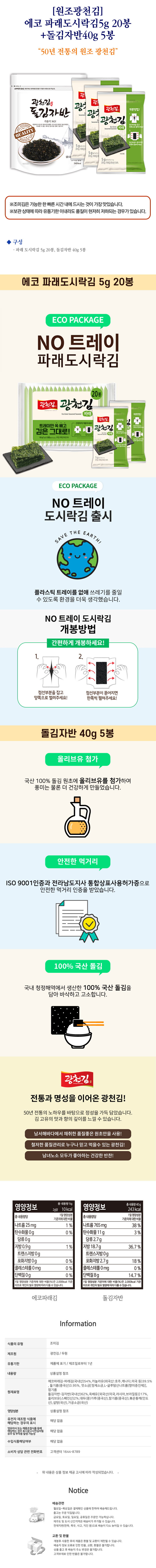 원조광천김 에코 파래도시락김5g 20봉+돌김자반40g 5봉