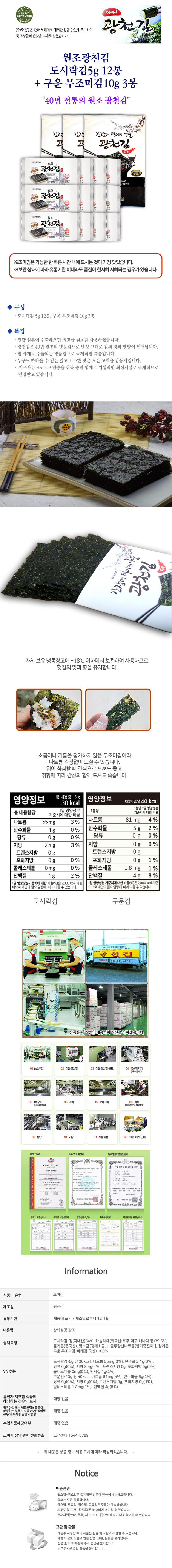 원조광천김 도시락김5g 12봉+구운 무조미김10g 3봉
