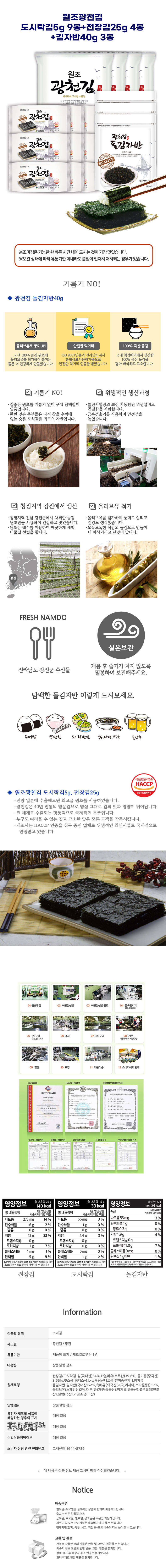 원조광천김 도시락김5g 9봉+전장김25g 4봉+김자반 3봉