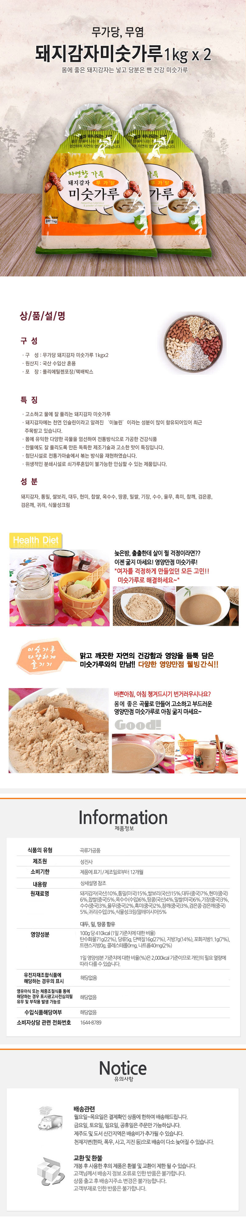 무가당 무염 돼지감자 미숫가루 1kg*2