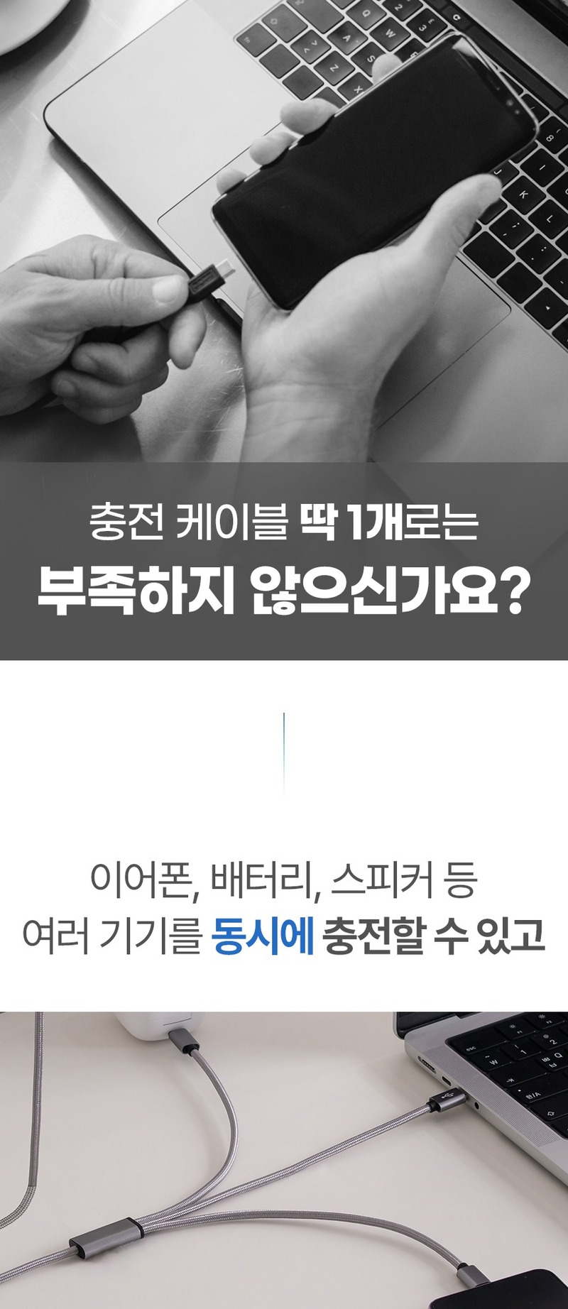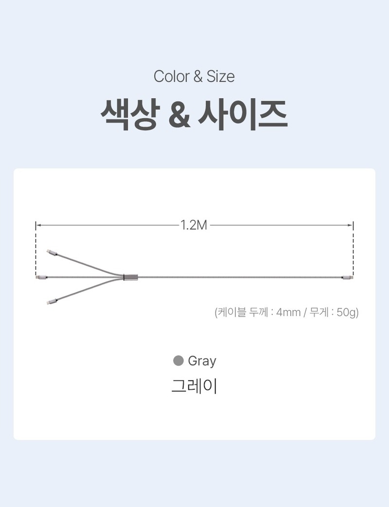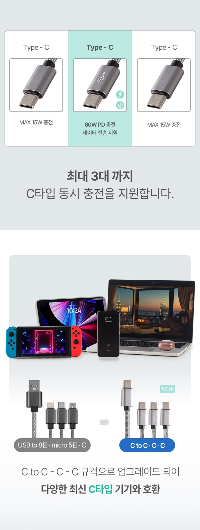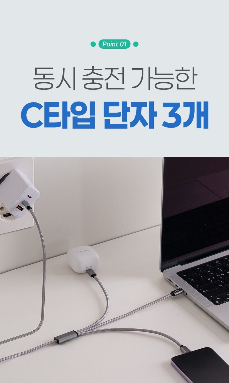 [플라이토] 트리플 C타입 PD 75W 3in1 초고속 충전 멀티 케이블 1.2m