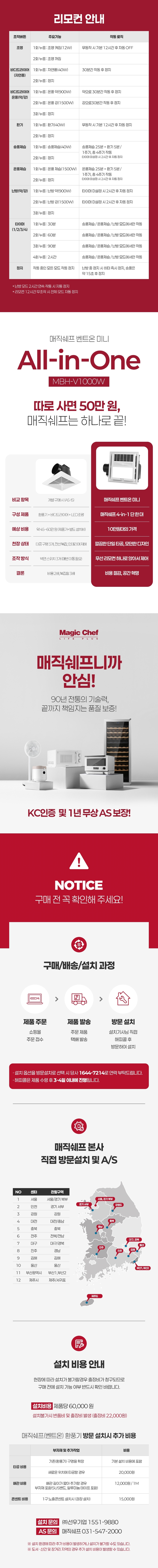 [매직쉐프] 벤트온 복합환풍기 욕실난방 제습 복합전동댐퍼 바디드라이 MBH-V1000W