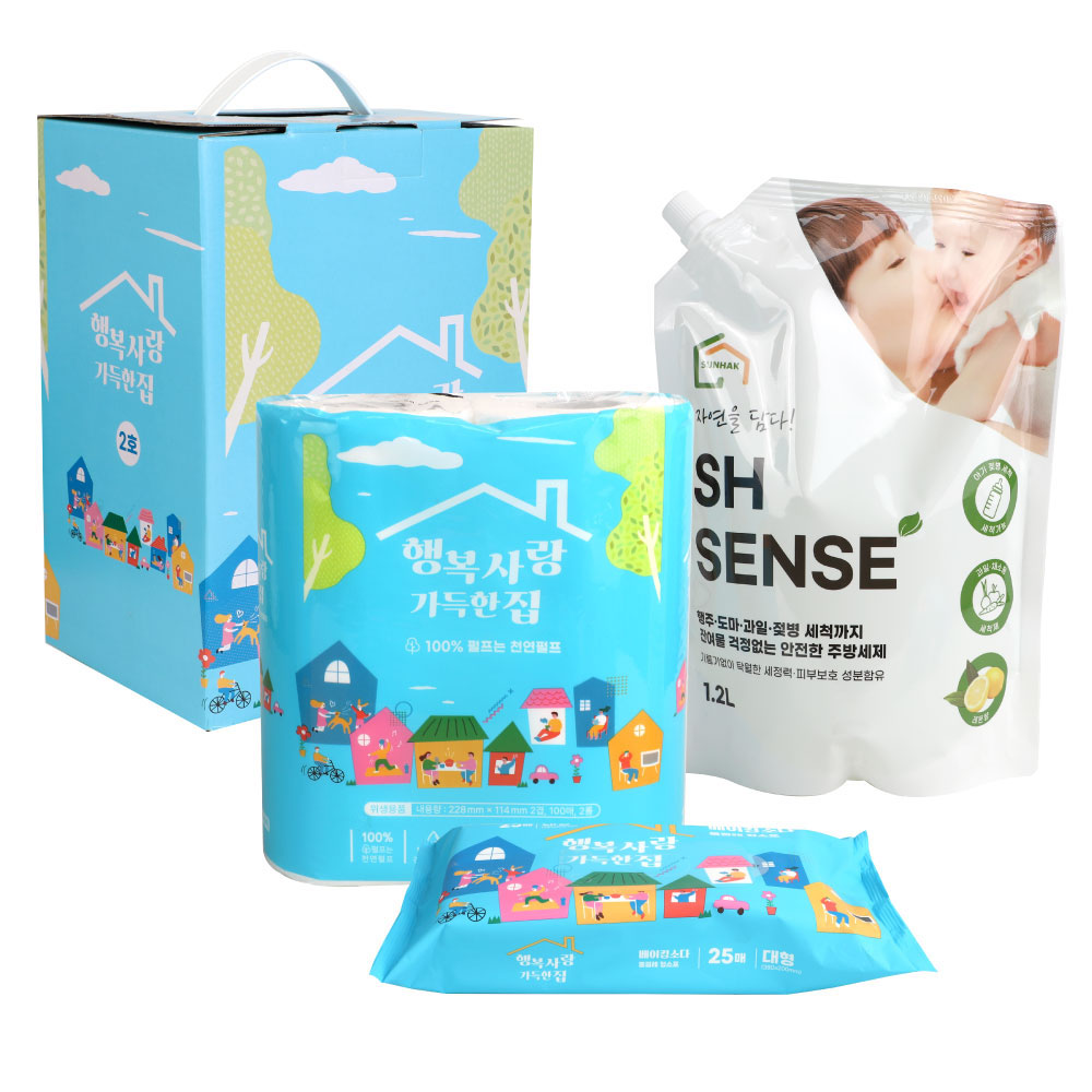 • [행복사랑 가득한집] 2호(주방세제 1.2L / 청소포 25매 / 키친타올 100매 x 2롤)