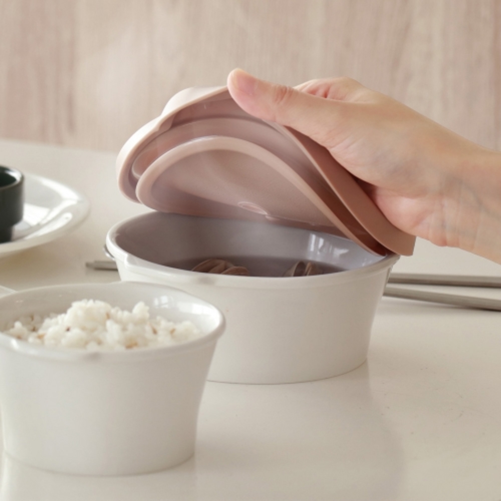• [이우아여사] 온기 도자기 전자레인지 국용기 큰공기냉동밥보관용기 실리콘밀폐용기 2개