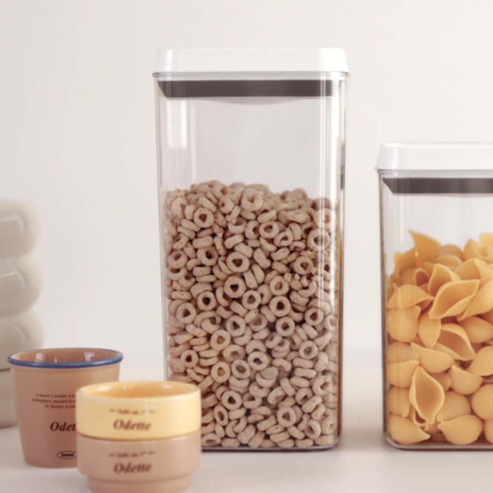 • [이우아여사] 1+1 원터치 밀폐용기 진공 캐니스터 사료 시리얼 파스타 1000ml
