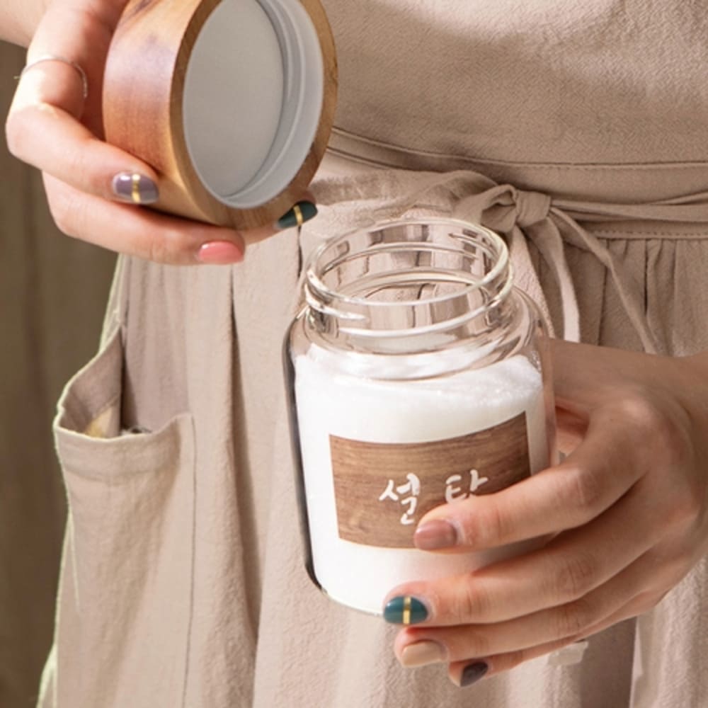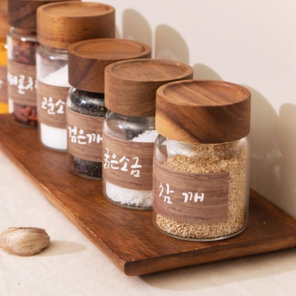 • [이우아여사] 천연나무 내열 유리저장병 원목 양념병 210ml