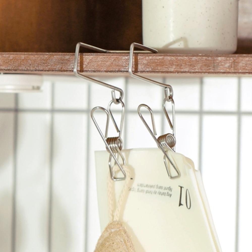 • [이우아여사] 클립형 스텐 고무장갑걸이 고리집게 상부장 수납 후크