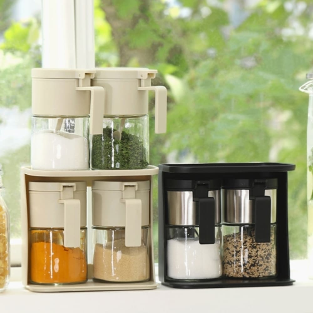 • [이우아여사] 로망키친 스푼있는 양념통 양념병 랙세트2구 아이보리
