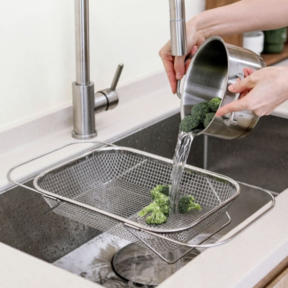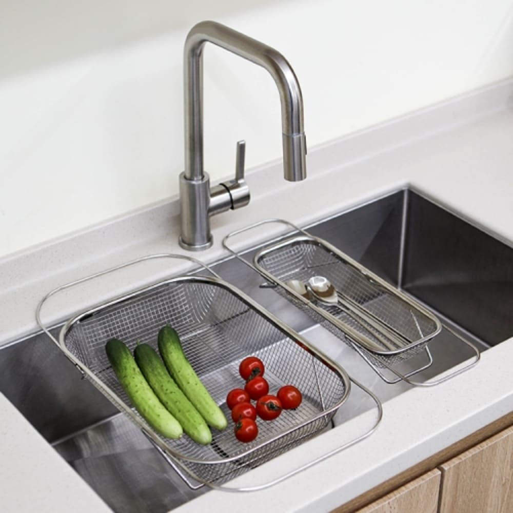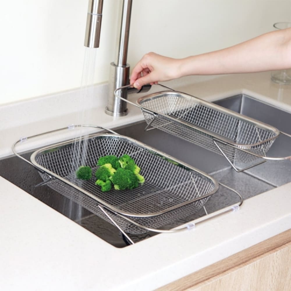 • [이우아여사] 스틸렌 304올스텐 길이조절 사각채반 싱크대 바스켓 소