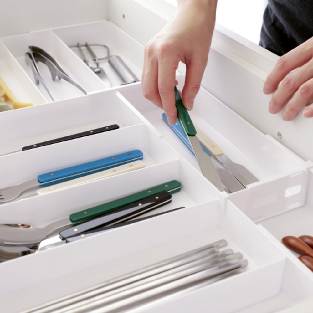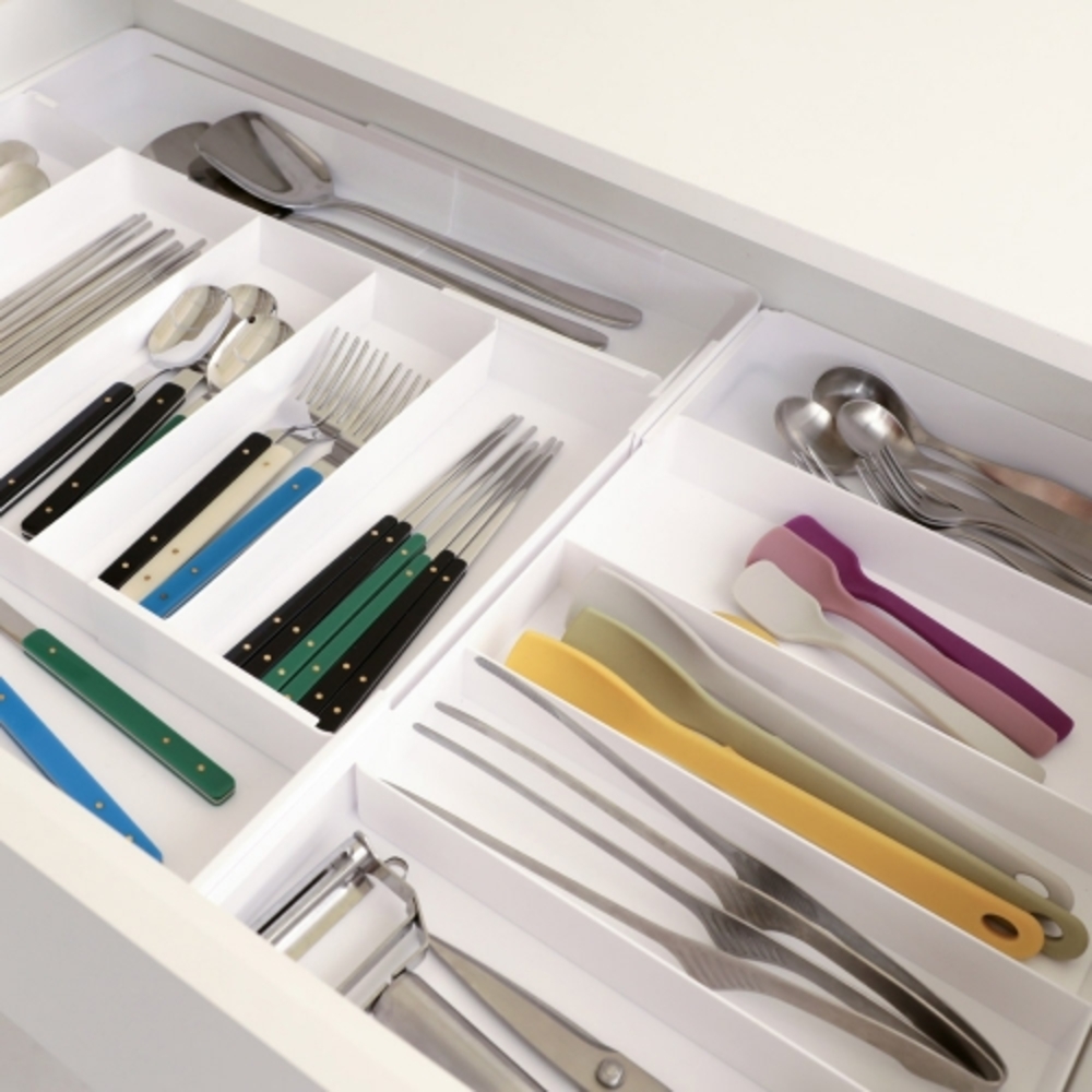 • [이우아여사] 길이조절 칸막이 수저정리함 싱크대 수저통 서랍 보관함 조리도구 꽂이 숟가락통 5칸