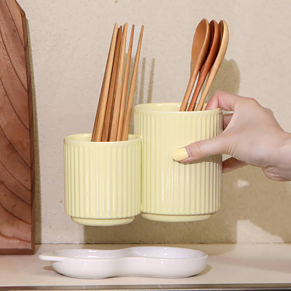 • [이우아여사] 플리츠 트윈 물빠짐 수저통 일체형 도자기 수저정리함
