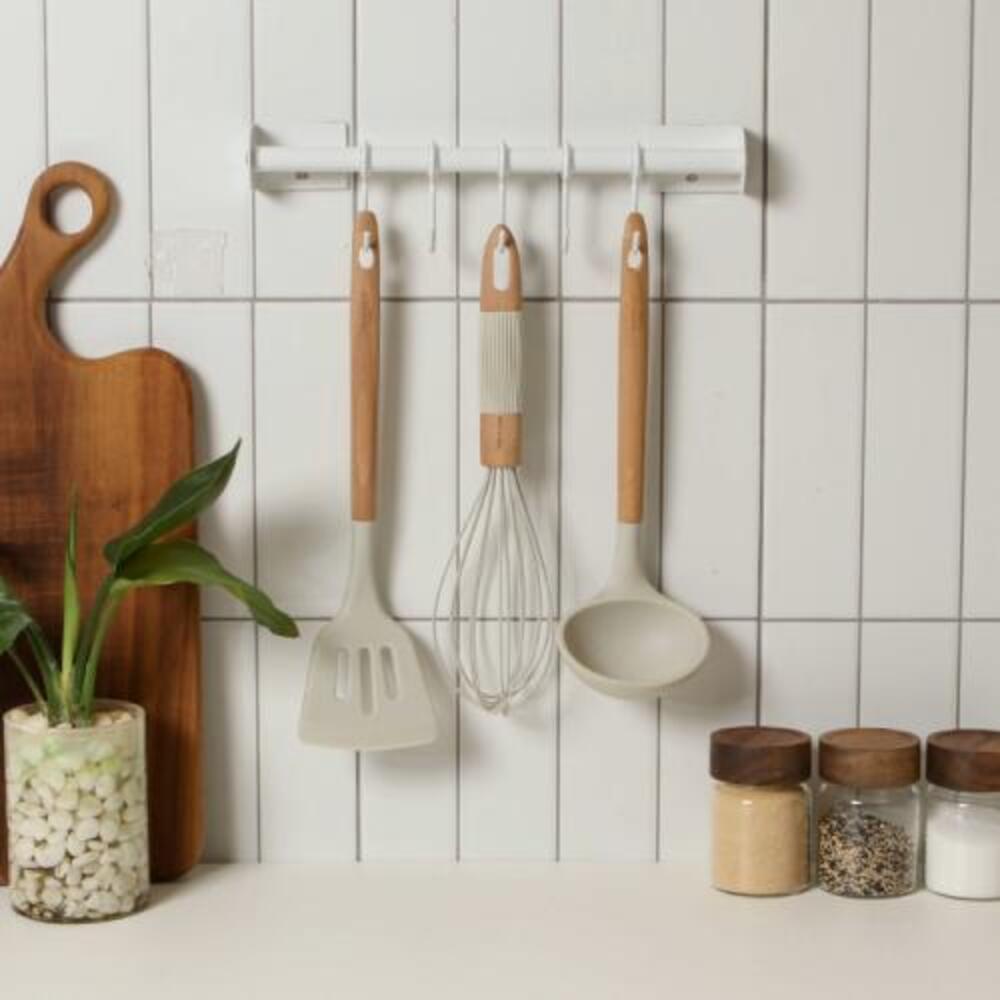 • [이우아여사] 주방행거레일 조리도구 냄비뚜껑거치대 국자걸이 화이트 대형