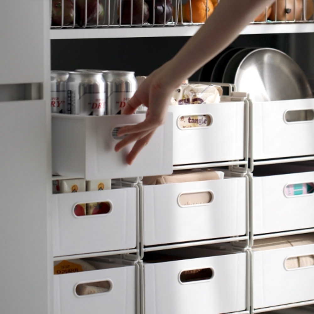 • [이우아여사] 적층식 슬라이딩 철제 수납함 펜트리 수납 정리함 리빙박스 슬라이드 약통 보관함 중형