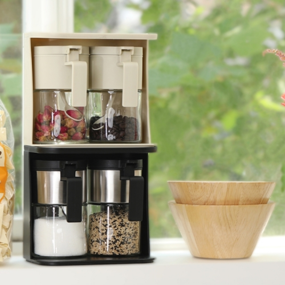 • [이우아여사] 로망키친 스푼있는 양념통 양념병 랙세트2구 블랙