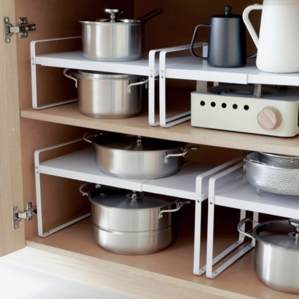 • [이우아여사] 1+1 길이조절 후라이팬정리대 냄비 뚜껑 거치대 주방 수납 접시 정리 선반 그릇 냄비정리대