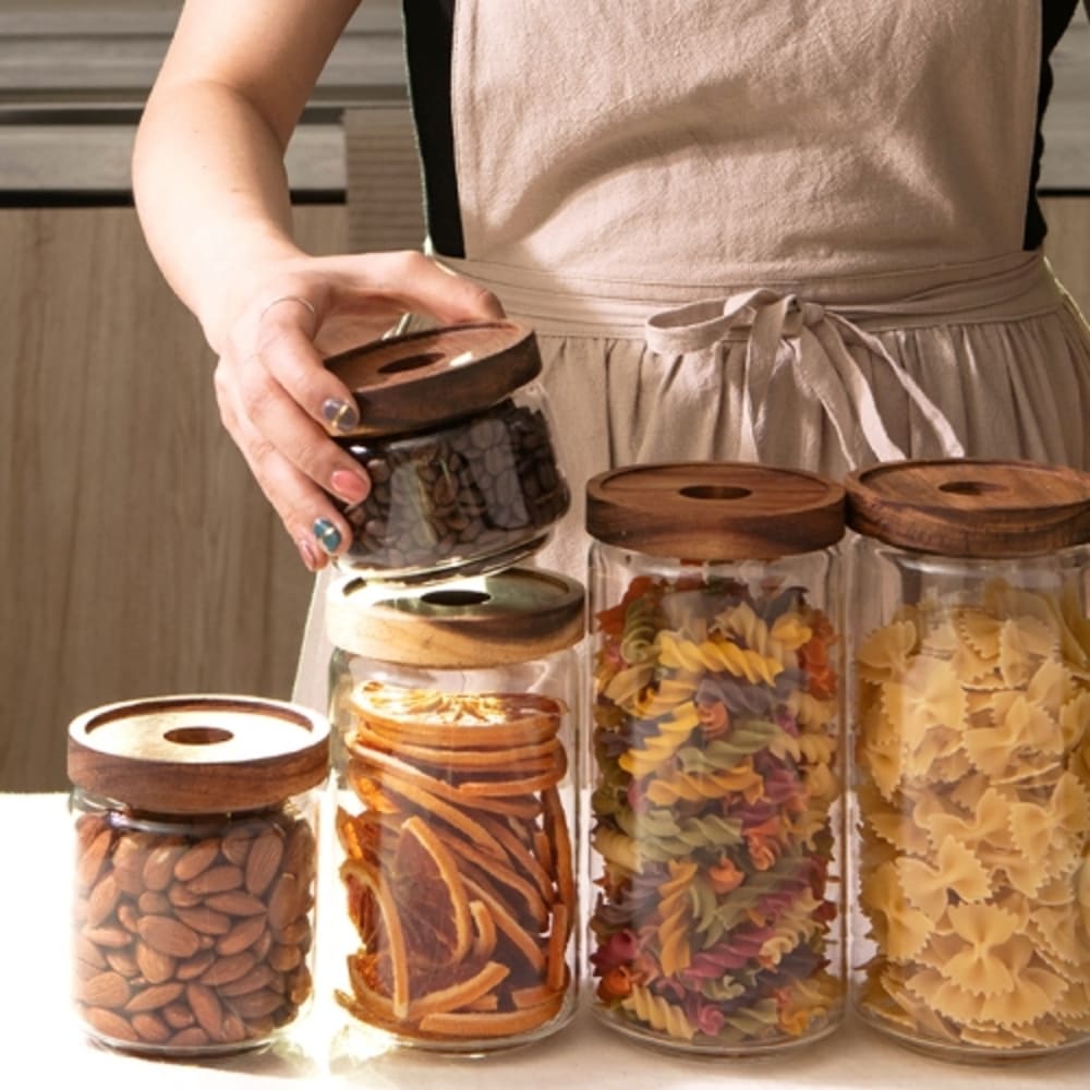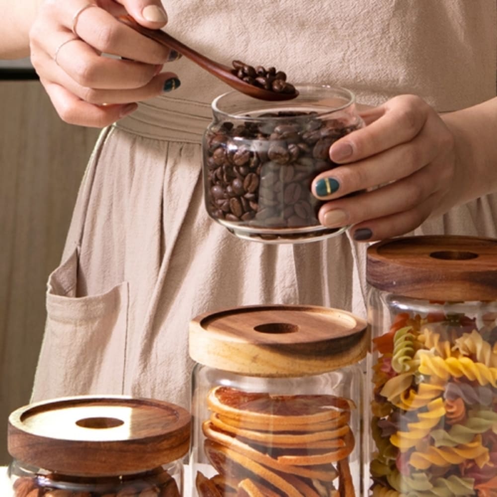 • [이우아여사] 천연나무 내열 유리저장병 원목 캐니스터 950ml
