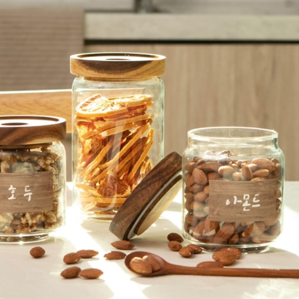 • [이우아여사] 천연나무 내열 유리저장병 원목 캐니스터 750ml
