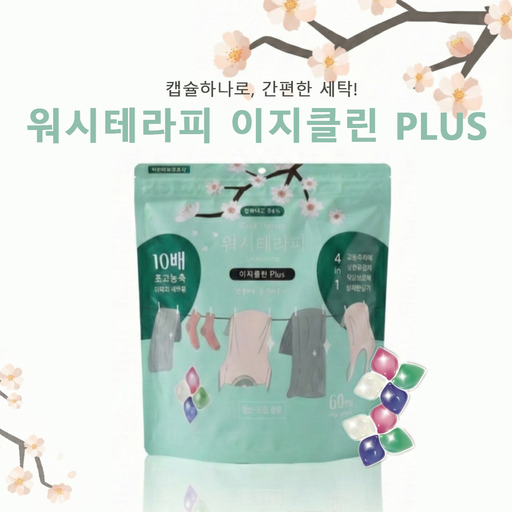 • 워시테라피 이지클린 PLUS 캡슐세제 10배 초고농축 스위스다우니향 10g×60개 (일반·드럼겸용)