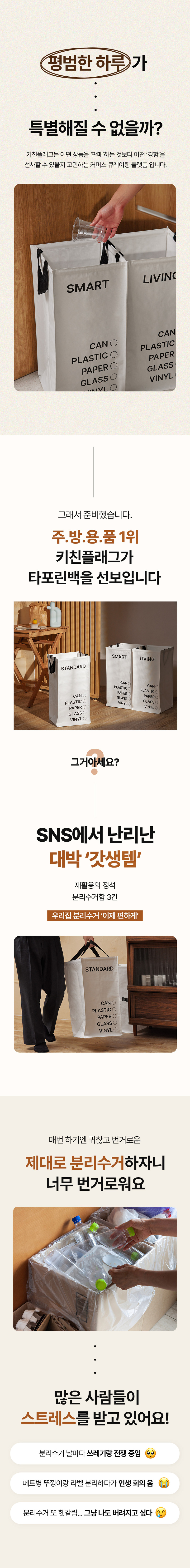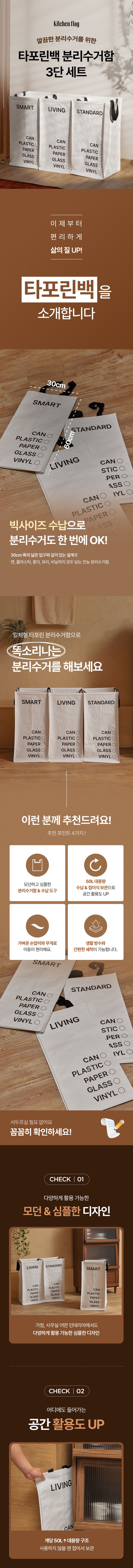 [키친플래그] 3단 타포린 분리수거함