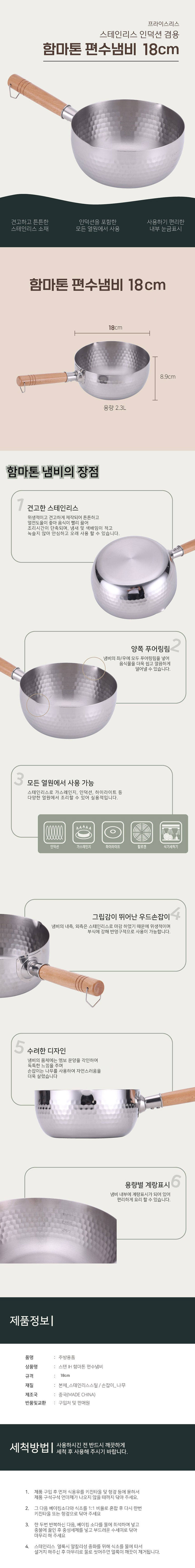 프라이스리스 스텐 인덕션 함마톤 냄비 18cm